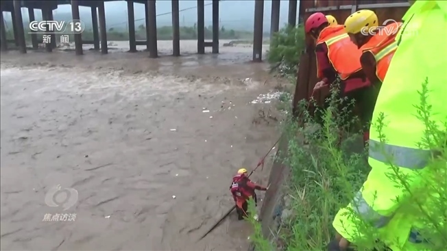 河北武安市南環(huán)東路消防救援站政治指導(dǎo)員田明:“救援人員到達(dá)現(xiàn)場(chǎng)以后,發(fā)現(xiàn)現(xiàn)場(chǎng)情況十分危急,首先是被困車(chē)輛和人員處于河道正中央,距兩岸均有50余米,二是水流十分湍急,而且水中雜物很多,嚴(yán)重影響施救。”
