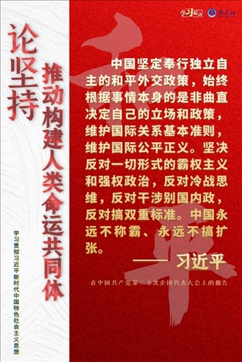 當(dāng)前,世界之變、時(shí)代之變、歷史之變正以前所未有的方式展開(kāi)。人類(lèi)社會(huì)面臨前所未有的挑戰(zhàn)。世界又一次站在歷史的十字路口,何去何從取決于各國(guó)人民的抉擇。中國(guó)始終堅(jiān)持維護(hù)世界和平、促進(jìn)共同發(fā)展的外交政策宗旨,致力于推動(dòng)構(gòu)建人類(lèi)命運(yùn)共同體。