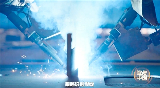 機(jī)器人測量鋼板尺寸和位置,大腦根據(jù)數(shù)據(jù)迅速發(fā)出指令,焊槍上的激光感應(yīng)器跟蹤識別焊縫,實(shí)時糾偏。