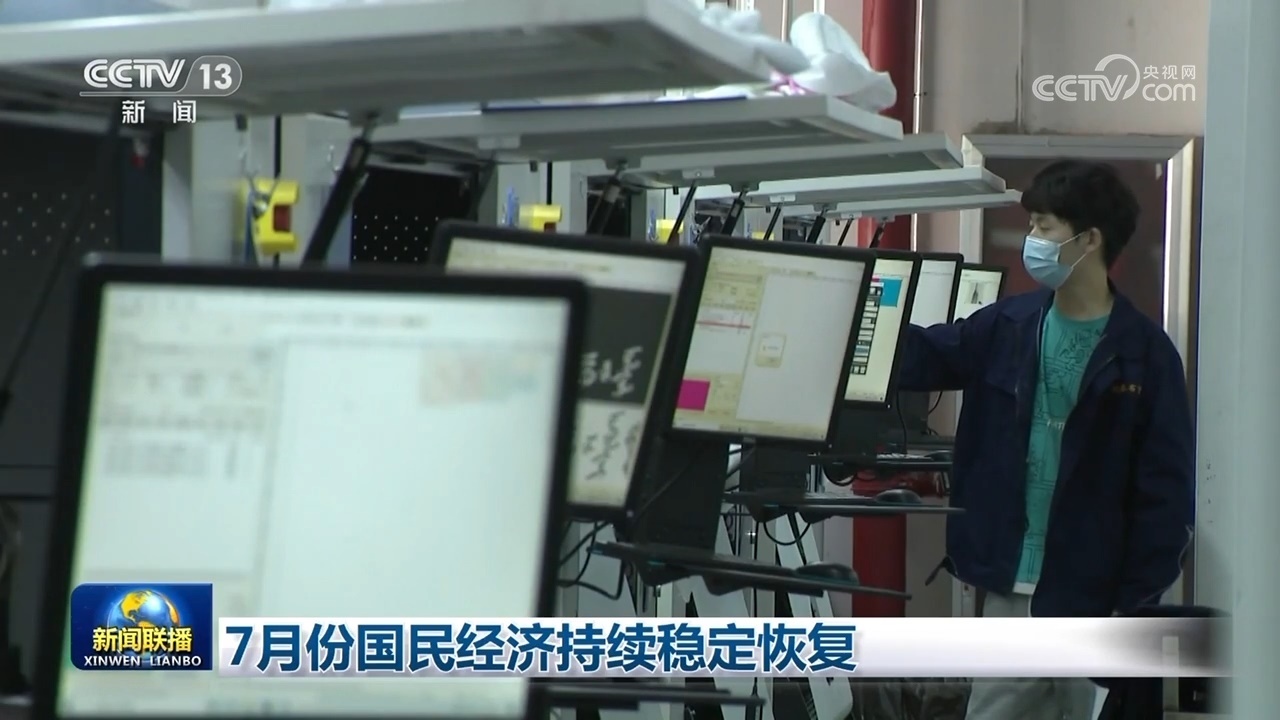 央視網(wǎng)消息(新聞聯(lián)播):國務(wù)院新聞辦今天(8月15日)舉行新聞發(fā)布會(huì),國家統(tǒng)計(jì)局相關(guān)負(fù)責(zé)人介紹當(dāng)前經(jīng)濟(jì)形勢,多項(xiàng)數(shù)據(jù)顯示,7月份國民經(jīng)濟(jì)持續(xù)穩(wěn)定恢復(fù)。