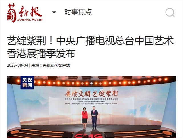 近期,中央廣播電視總臺(tái)CGTN紀(jì)錄頻道“賡續(xù)文明 藝綻紫荊”中國(guó)藝術(shù)香港展播季在京港兩地共同發(fā)布。30余部展現(xiàn)中華優(yōu)秀傳統(tǒng)文化的總臺(tái)紀(jì)錄片、專題片正陸續(xù)通過CGTN紀(jì)錄頻道在香港播出。