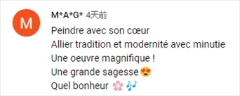 法語網(wǎng)友M*A*G*:“用心作畫,將傳統(tǒng)與現(xiàn)代結(jié)合,華麗的作品,偉大的智慧,這是多么幸福的一件事??!”