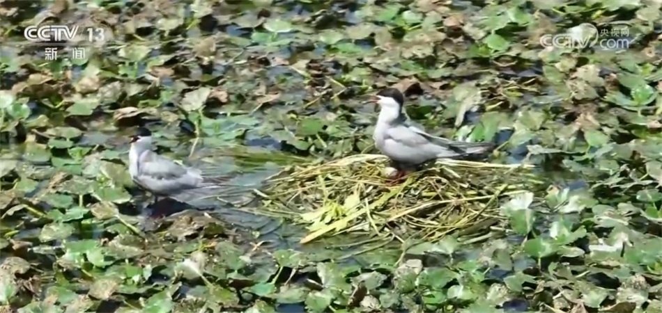 比如,兩地工作人員實現(xiàn)了聯(lián)合巡河、管護、治理。元蕩湖生態(tài)岸線的相關(guān)建設(shè),包括我所在的這個公園和步行橋也是兩地統(tǒng)一審批、接力建設(shè)起來的。目前,元蕩湖水質(zhì)已經(jīng)達(dá)到國家考核目標(biāo),生態(tài)岸線占比超過80%。在湖心的位置有一處水草聚集區(qū)域,船是不會靠近的,這是人為劃定的水上鳥兒的保育區(qū),能看見不少水鳥在那里嬉戲飛翔。鏡頭拉近,有的鳥兒已經(jīng)在這里筑巢產(chǎn)卵,把家安在了元蕩湖,水質(zhì)好不好,鳥兒最有發(fā)言權(quán)。現(xiàn)在,元蕩湖在水系連通、河道清障、岸坡整治、水源涵養(yǎng)等方面實現(xiàn)了統(tǒng)一推進(jìn)。