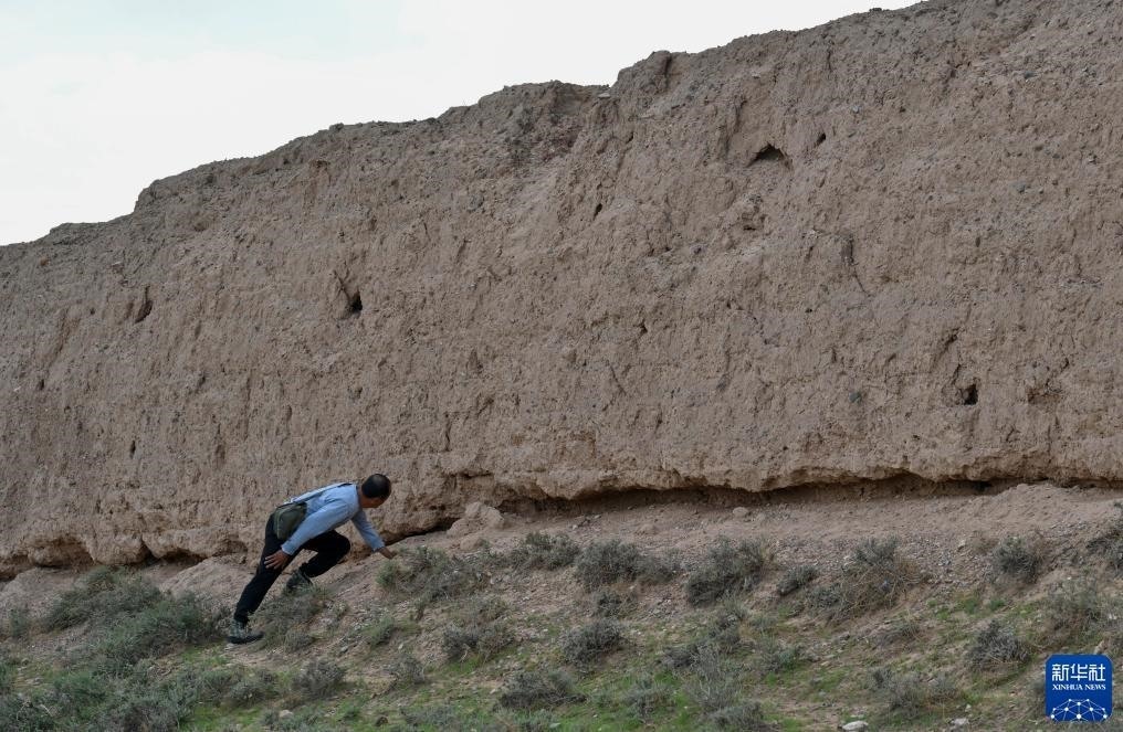 8月20日,董海寧觀察長城墻體情況。新華社記者 劉金海 攝