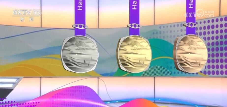 杭州亞運(yùn)會(huì)獎(jiǎng)牌名為“湖山”?!昂健睂⒘间疚幕姆叫斡耒蛨A形的獎(jiǎng)?wù)氯跒橐惑w,正面用凸出的線條勾勒出“三面云山一面城”的杭城畫(huà)卷,湖水漣漪,山巒起伏。獎(jiǎng)牌上方的束扣是一個(gè)帶有倒影的三孔橋,設(shè)計(jì)取自京杭大運(yùn)河最南端的拱宸橋。一塊獎(jiǎng)牌,將杭州的三處世界文化遺產(chǎn):良渚、西湖、大運(yùn)河都融入其中。