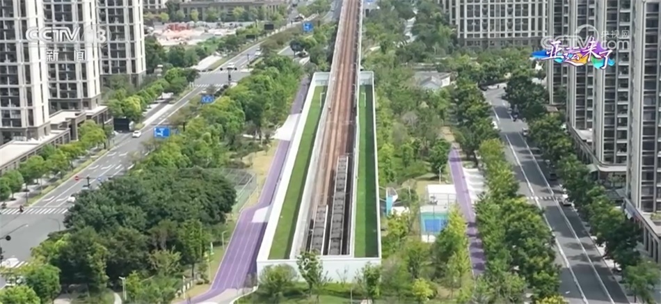 來到杭州臨平區(qū)的豐彩運(yùn)動(dòng)公園,公園形似一個(gè)“彩虹大吉他”,穿梭其間的地鐵宛若“琴弦”撥動(dòng)。