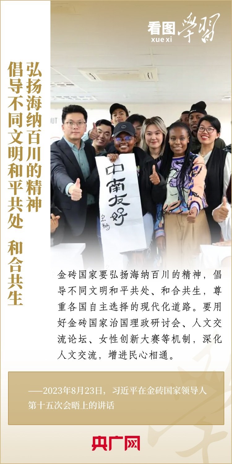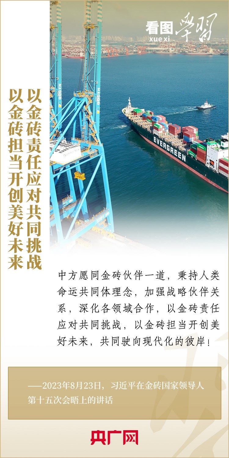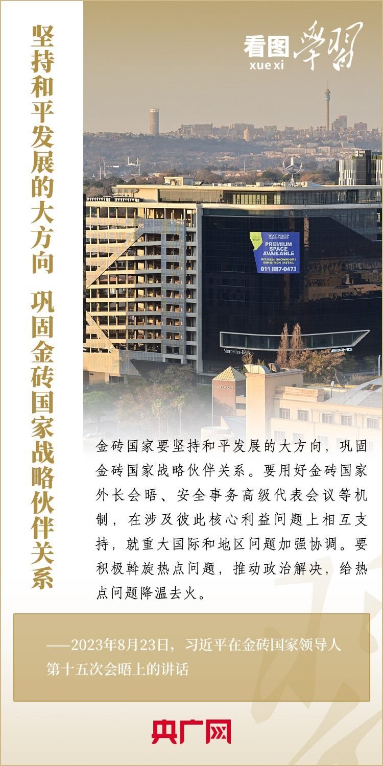 當(dāng)?shù)貢r間8月23日,習(xí)近平主席出席金磚國家領(lǐng)導(dǎo)人第十五次會晤并發(fā)表重要講話,強(qiáng)調(diào)金磚國家要秉持開放包容、合作共贏的金磚精神,以金磚責(zé)任應(yīng)對共同挑戰(zhàn),以金磚擔(dān)當(dāng)開創(chuàng)美好未來。一起來學(xué)習(xí)!