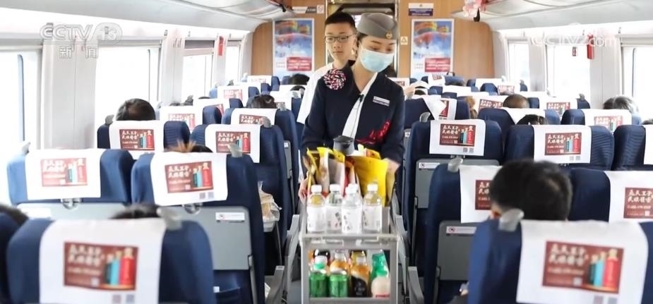 為了讓旅客在高鐵上有更多的美食選擇,高鐵移動(dòng)餐車,每1小時(shí)前往各車廂送餐1次,旅客在選購(gòu)的同時(shí),也可以通過移動(dòng)餐車進(jìn)行訂餐服務(wù)。