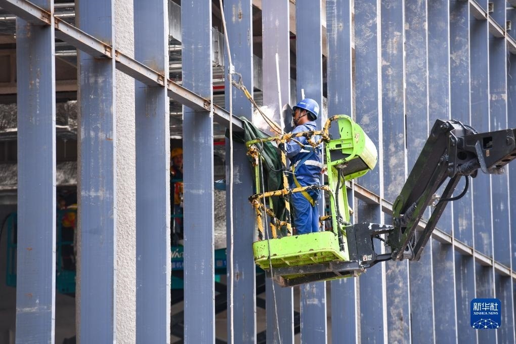 8月30日,在河套深港科技創(chuàng)新合作區(qū)首批重點(diǎn)項(xiàng)目河套壹號(hào)(原名:深港科創(chuàng)綜合服務(wù)中心)建設(shè)現(xiàn)場(chǎng),中建深裝的工人進(jìn)行幕墻鋼龍骨焊接作業(yè)。新華社記者 梁旭 攝