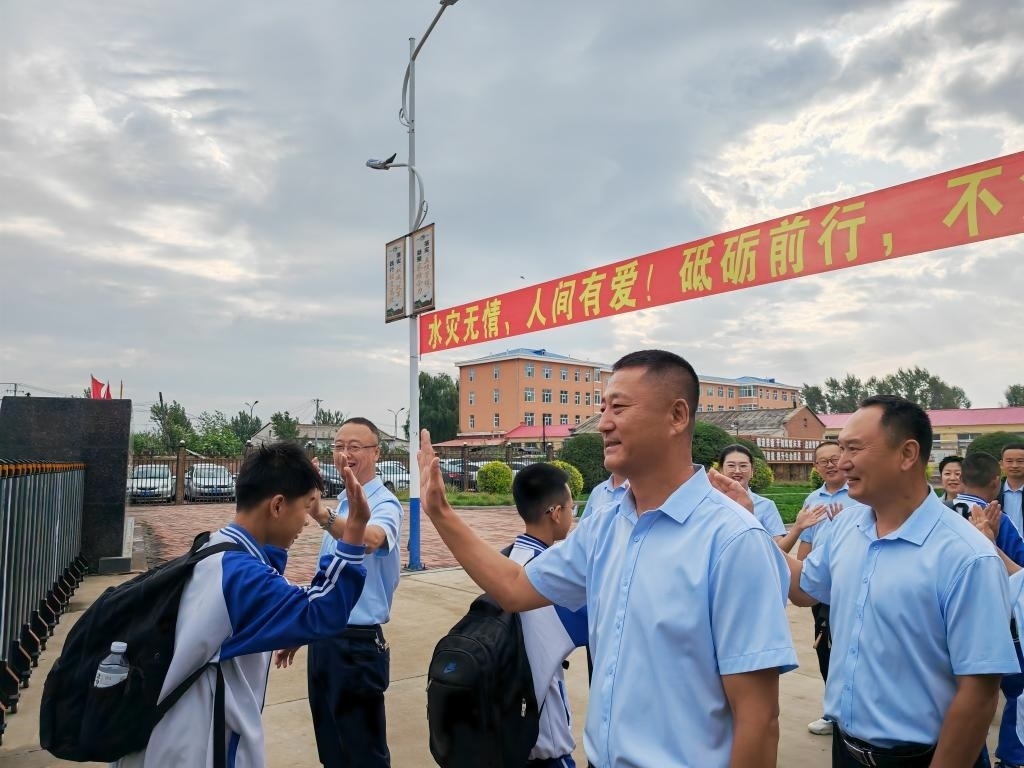 清晨,黑龍江省延壽縣第四中學(xué)的教職工排成兩列,迎接學(xué)生們返校。學(xué)生們背著書包陸陸續(xù)續(xù)進(jìn)入校園,依次與教職工擊掌?!袄蠋熀谩薄八闹袣g迎你們”“開學(xué)快樂”等祝福此起彼伏。