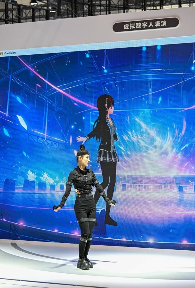 在中國電信股份有限公司天津分公司展臺,真人舞者身穿智能裝備,每做一個舞蹈動作巨型屏幕上的數(shù)字人都能實時精準再現(xiàn),就連舞者的面部表情都可以精準模仿……目前,由真人扮演驅(qū)動或人工智能驅(qū)動的數(shù)字人已被中國旅游行業(yè)廣泛應(yīng)用。