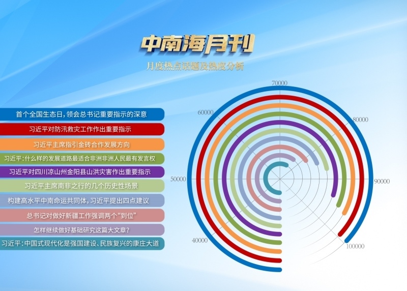 中國式現(xiàn)代化是強國建設、民族復興的康莊大道,康莊大道并不等于一馬平川。就像習近平總書記所強調的,“要把中國式現(xiàn)代化5個方面的中國特色變?yōu)槌晒嵺`,把鮮明特色變成獨特優(yōu)勢,需要付出艱巨努力”。央視網“智聞”系統(tǒng)提取分析8月全網時政新聞熱點顯示,總書記對推進中國式現(xiàn)代化的最新部署吸引全網目光。