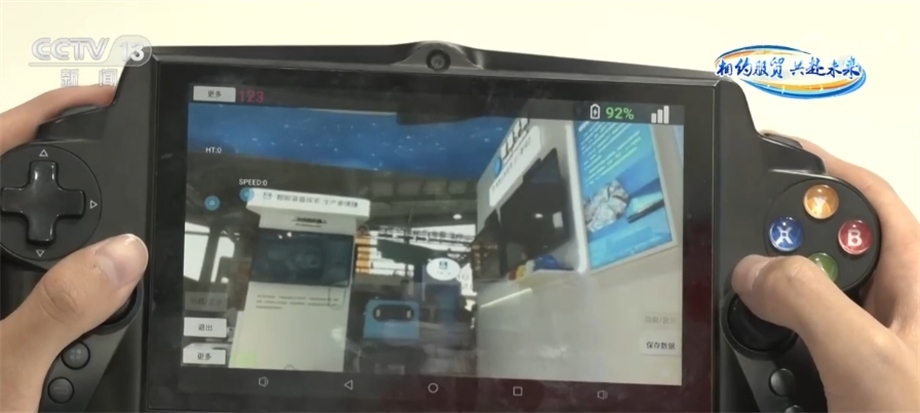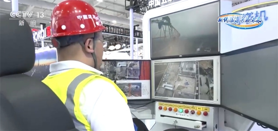 服貿(mào)會(huì)工作人員 趙晨曦:我現(xiàn)在控制的塔吊位于湖北省武漢市,距離展會(huì)現(xiàn)場(chǎng)1200公里。現(xiàn)在我們來(lái)旋轉(zhuǎn)大臂,我們可以看到運(yùn)行過(guò)程非常流暢。接下來(lái)我們來(lái)落吊鉤,畫面也是幾乎沒(méi)有延遲。