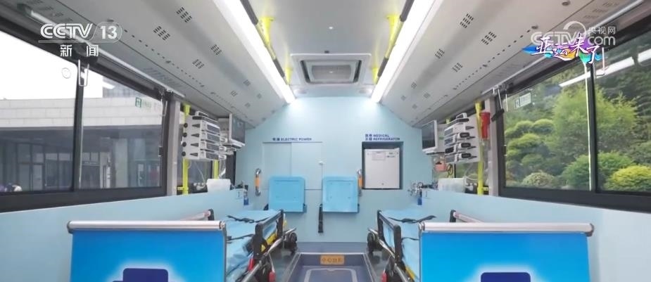 大型5G移動急救復(fù)蘇單元由兩輛公交車改裝而成,包含1輛急救治療車和1輛急救指揮車。急救治療車內(nèi)設(shè)有2個擔(dān)架位和1個搶救床位,可同時轉(zhuǎn)運(yùn)多名危重病人。車內(nèi)配備了功能全面、集成度高的急救和轉(zhuǎn)運(yùn)平臺,可以在車內(nèi)開展體外呼吸循環(huán)支持和緊急救命性手術(shù)等復(fù)雜急救手段。