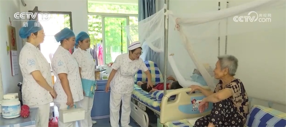 由于住在這里的康復(fù)病人平均年齡都比較大,除了進(jìn)行正常的護(hù)理外,邢少云每到一間病房都會拉著他們的手聊上一會兒,老人們看到邢少云的到來也都顯得格外開心。