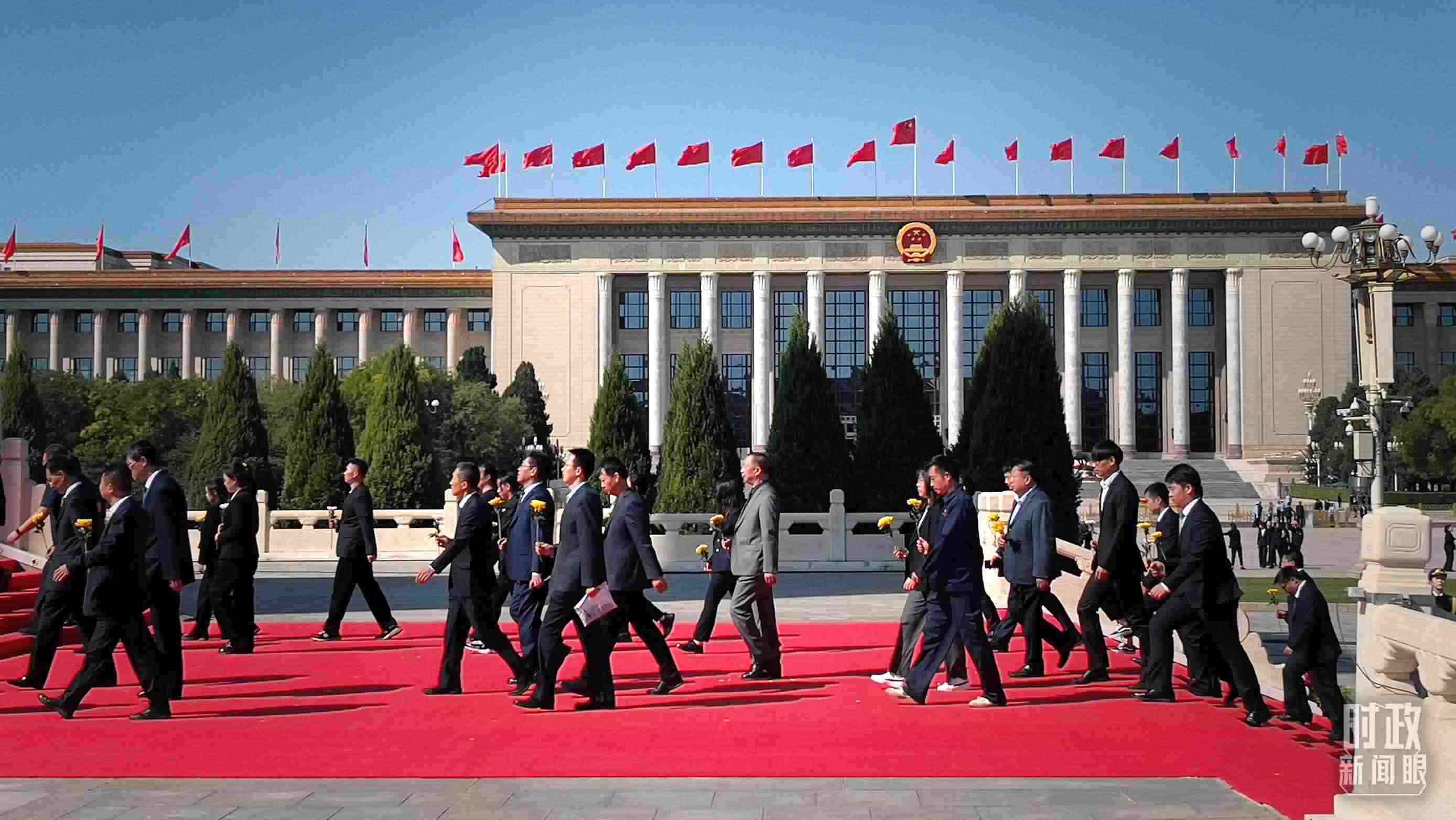 9月30日上午,臨近10時,習(xí)近平總書記等黨和國家領(lǐng)導(dǎo)人來到天安門廣場,出席向人民英雄敬獻花籃儀式。