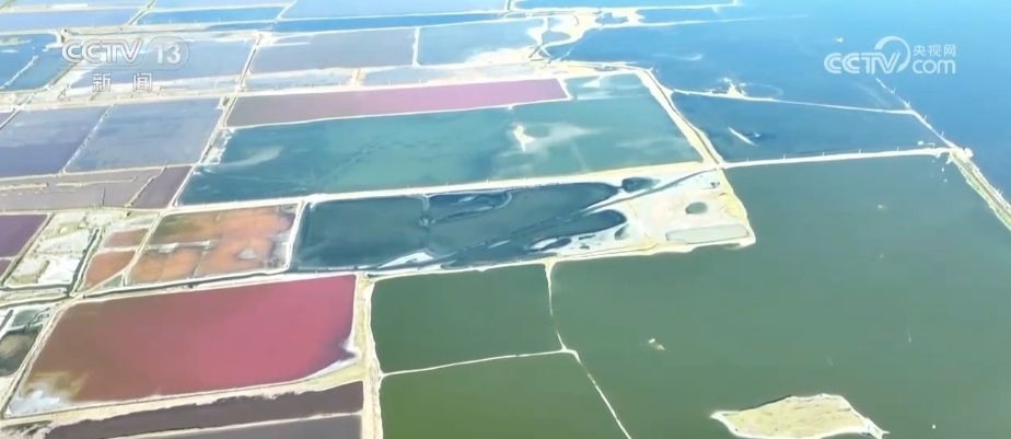 在強光作用下,千年鹽湖內(nèi)的藻類和礦物質(zhì)發(fā)生反應,呈現(xiàn)出迷人的七彩湖光,仿佛一張巨型的自然“調(diào)色盤”,令觀者驚艷贊嘆。中秋、國慶假期期間,水光瀲滟、色彩斑斕的鹽湖也吸引了大批游客前來觀賞。近年來,當?shù)丶哟篼}湖生態(tài)治理和保護力度,越來越多的動物選擇來到這里安家。截至目前,已經(jīng)有100多種鳥類在這里棲息、繁衍。