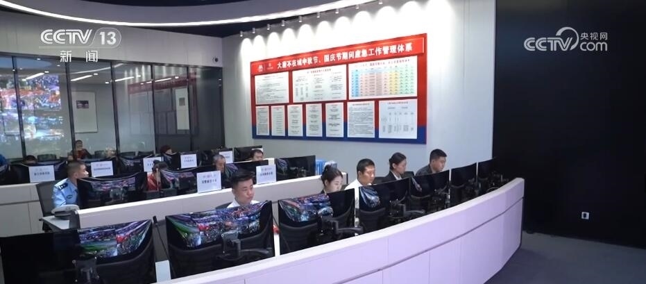 在大唐不夜城安保中心的指揮大廳里,記者看到,包括應急、城管、公安、交通等十余個單位都派出人員在這里聯(lián)合辦公,方便隨時調(diào)度。安保指揮中心的大屏幕上,實時顯示著關鍵點位的具體情況等多種信息。