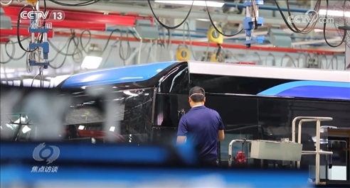 宇通客車股份有限公司海外高端車產品管理科科長楊普:“安全技術,還有輕量化技術,我們都做了比較多的突破,電池的Pack(電池包),還有電池BMS(電池管理系統(tǒng))的控制,它的效率,包括它的體積,還有它的重量,我們做了大量的研發(fā)跟突破。”