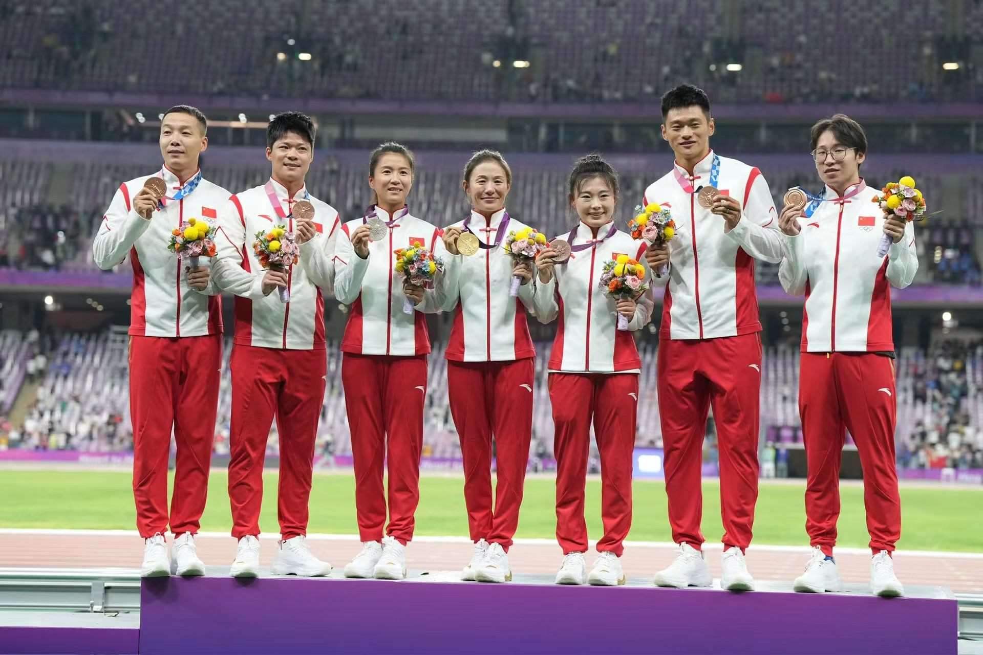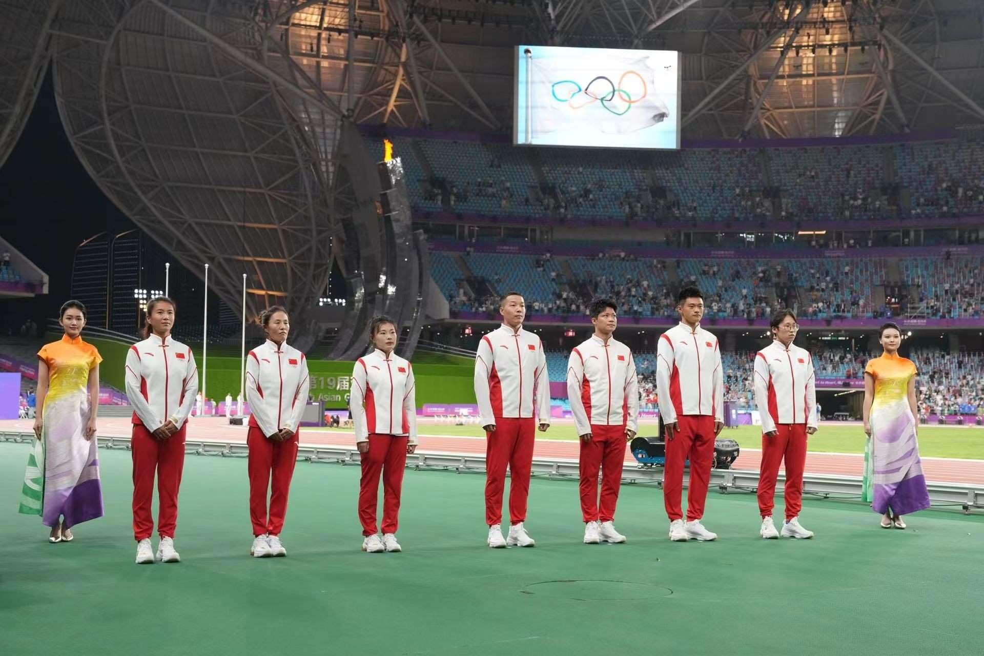 10月4日晚,在杭州亞運(yùn)會(huì)田徑比賽全部結(jié)束后,中國(guó)奧委會(huì)為蘇炳添、謝震業(yè)、吳智強(qiáng)、湯星強(qiáng)、切陽(yáng)什姐、劉虹和呂秀芝補(bǔ)發(fā)了奧運(yùn)會(huì)獎(jiǎng)牌。