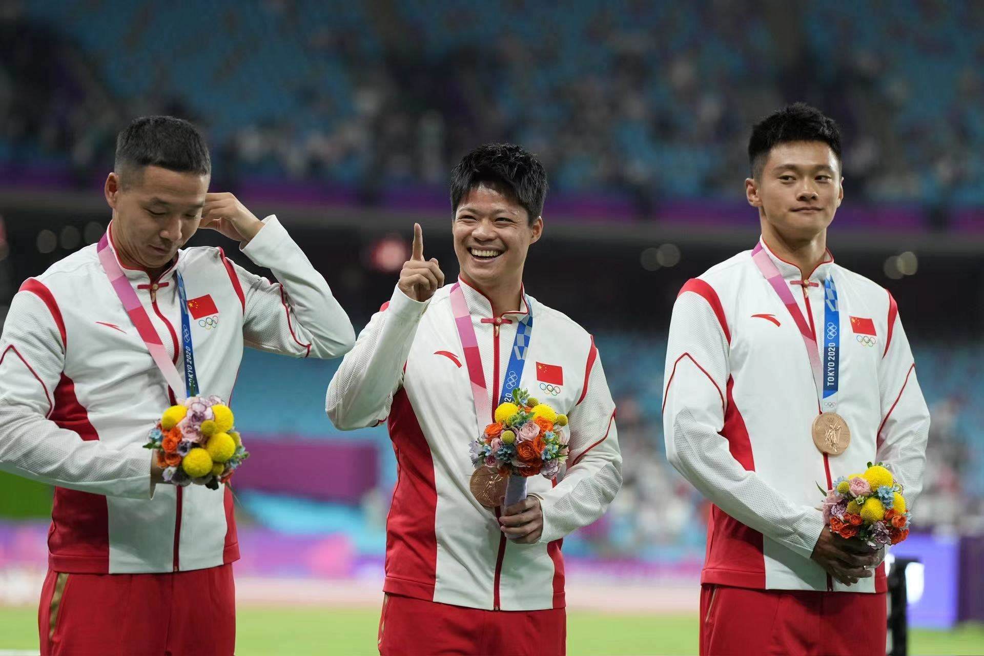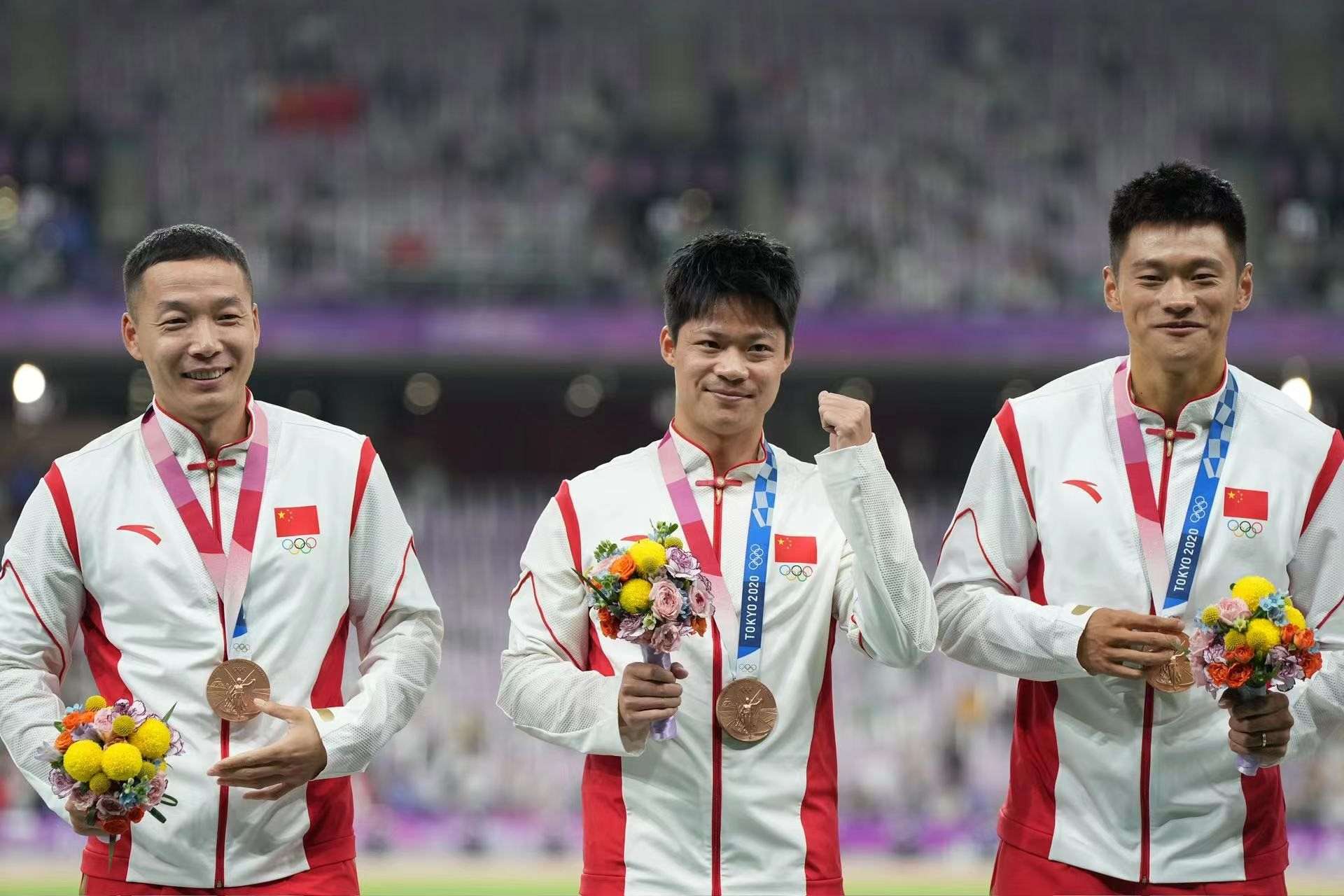 蘇炳添、謝震業(yè)、吳智強(qiáng)、湯星強(qiáng)參加了東京奧運(yùn)會(huì)田徑男子4×100米接力決賽,并在比賽中第四個(gè)沖過(guò)終點(diǎn)。去年2月,國(guó)際體育仲裁法庭裁定英國(guó)運(yùn)動(dòng)員烏賈在東京奧運(yùn)會(huì)期間違反了反興奮劑條例,取消英國(guó)隊(duì)男子4x100米接力成績(jī)并收回所獲銀牌,中國(guó)男子4x100米接力隊(duì)因此遞補(bǔ)獲得銅牌。這是中國(guó)男子4x100米接力隊(duì)首次在奧運(yùn)會(huì)上獲得獎(jiǎng)牌。