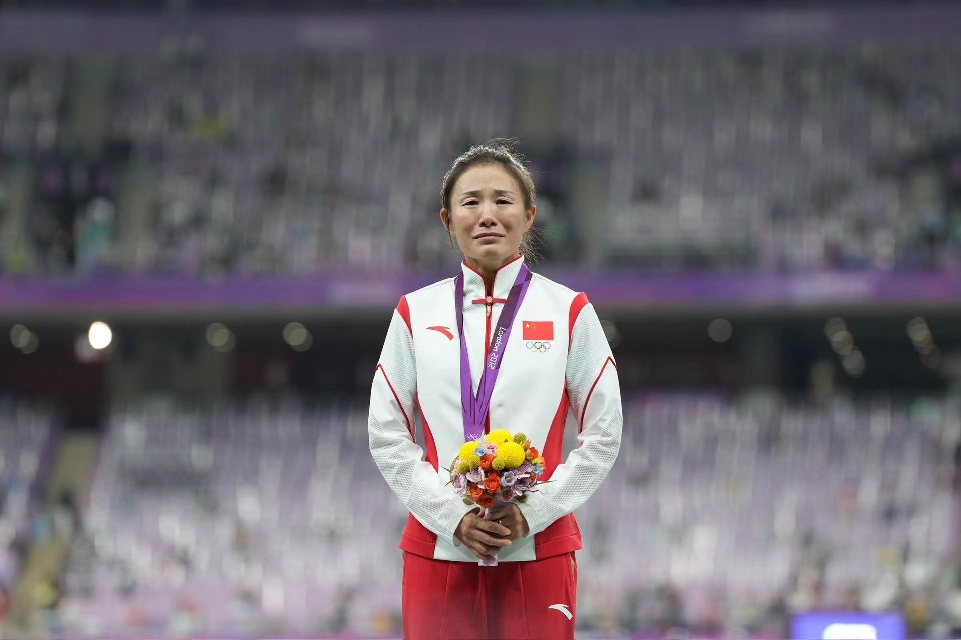 補(bǔ)發(fā)現(xiàn)場(chǎng),首先頒發(fā)的是男子4×100米接力銅牌。四位中國(guó)小伙子笑著走上銅牌領(lǐng)獎(jiǎng)臺(tái),接受頒獎(jiǎng)。隨后的競(jìng)走頒獎(jiǎng)儀式上,在三位得獎(jiǎng)運(yùn)動(dòng)員獲頒獎(jiǎng)牌后,《義勇軍進(jìn)行曲》奏響,三面五星紅旗冉冉升起,切陽(yáng)什姐眼中涌動(dòng)著晶瑩的淚花。