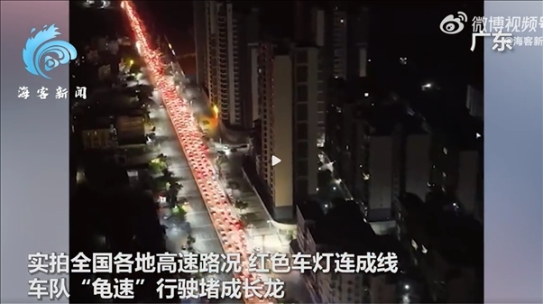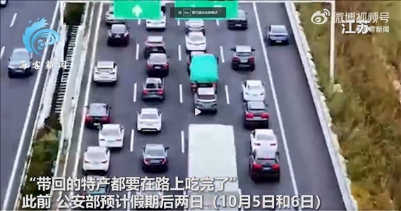 據(jù)??托侣劰俜轿⒉?,10月4日,中秋國慶假期進入第6天,多地陸續(xù)迎來返程高峰。實拍全國各地高速路況,紅色車燈連成線,車隊“龜速”行駛堵成長龍。有網(wǎng)友曬出高速路況畫面表示“特意提前三天回去,沒想到又堵路上了。”、“帶回的特產(chǎn)都要在路上吃完了”。
