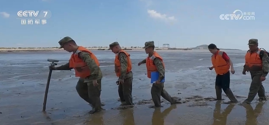 幸運(yùn)的是,記者跟隨采訪的這次任務(wù)沒有遭遇到大風(fēng)浪,經(jīng)過1個(gè)小時(shí)的平穩(wěn)航行后,海測小分隊(duì)順利抵達(dá)了坐標(biāo)方位。指揮員告訴記者,海測分為水深測量和地形測量,為了讓海圖上陸海結(jié)合部的拼接更加完美,海測兵們必須要背著沉重的測量裝備深入到小艇不能到達(dá)的岸線灘涂手動(dòng)測繪,測量點(diǎn)位附近大大小小的礁石,在海水的長期浸泡下變得異常濕滑,泥濘的淺灘也隨時(shí)有塌陷的危險(xiǎn)。