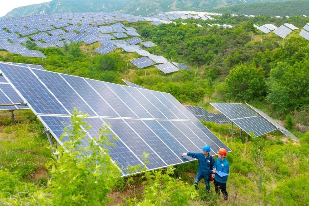 在煙臺市福山區(qū)回里鎮(zhèn)老嵐村,一排排藍色光伏板鋪滿山坡。這些光伏板將太陽光轉化成電能,并入國網(wǎng)煙臺供電公司后,源源不斷輸送到千家萬戶。原來無人問津的黃草坡,變成了綠色清潔能源的“發(fā)電站”。
