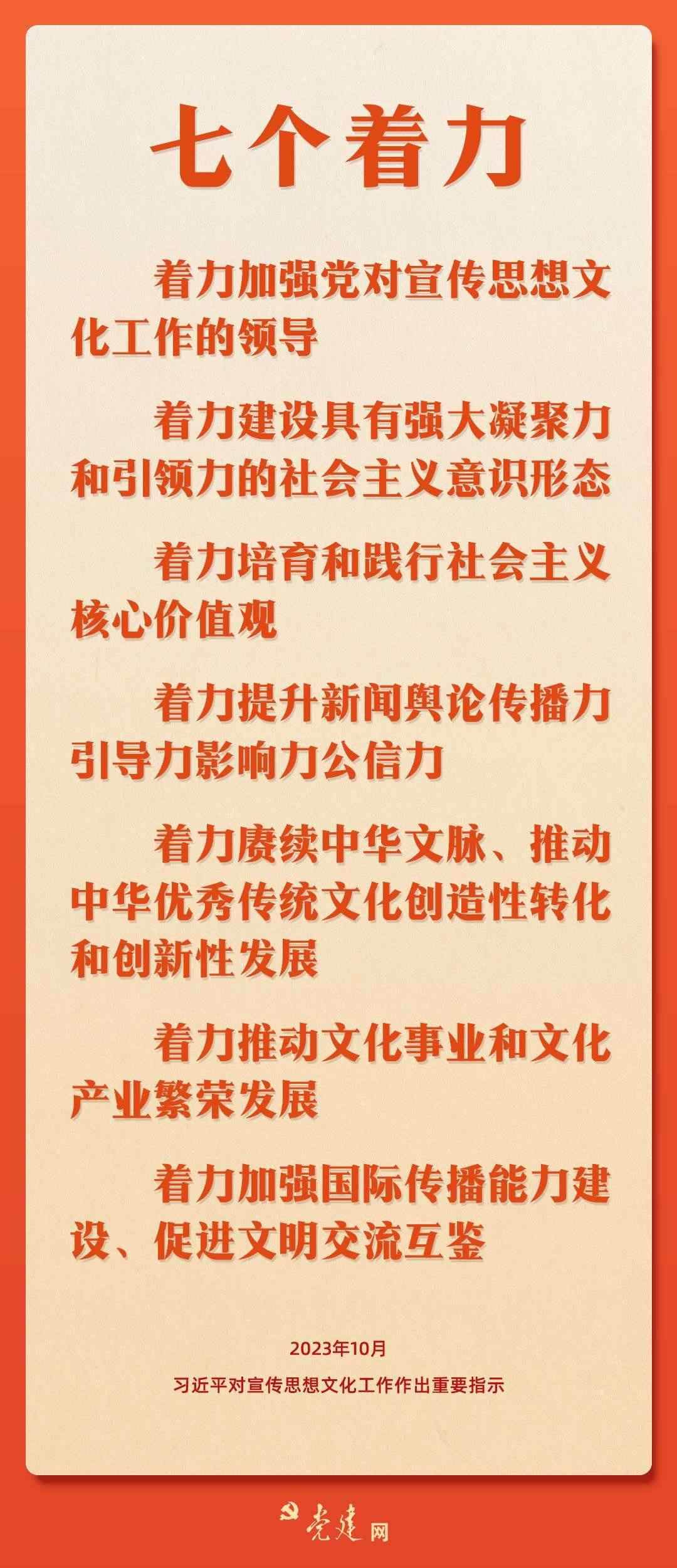 10月7日至8日,全國宣傳思想文化工作會議在京召開。會議傳達(dá)了習(xí)近平總書記對宣傳思想文化工作的重要指示,并首次提出習(xí)近平文化思想??靵硪粓D學(xué)習(xí)會議精神要點(diǎn)!