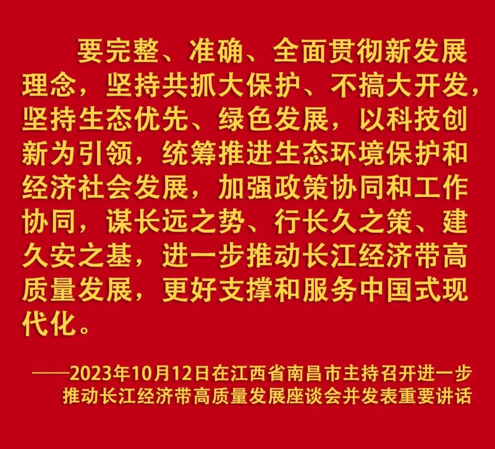 10月12日,中共中央總書記、國家主席、中央軍委主席習(xí)近平在江西省南昌市主持召開進(jìn)一步推動(dòng)長江經(jīng)濟(jì)帶高質(zhì)量發(fā)展座談會并發(fā)表重要講話。