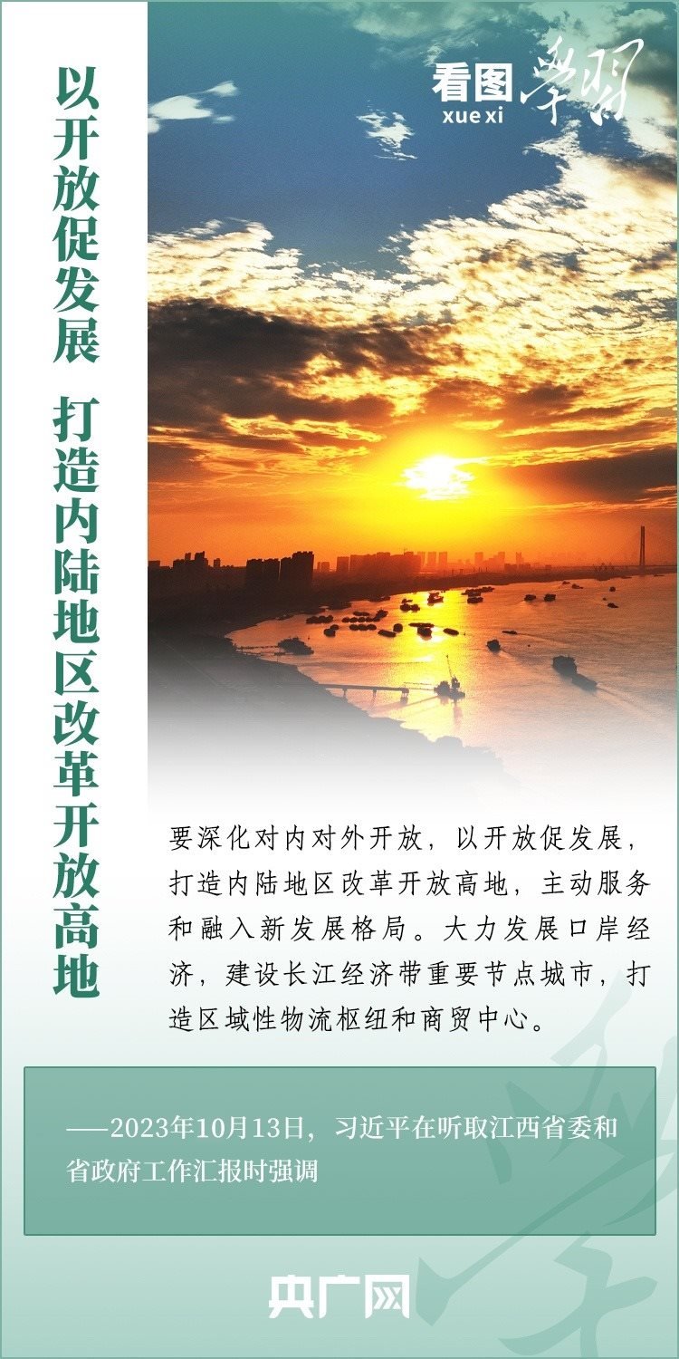 10月10日至13日,習(xí)近平總書記在江西九江、景德鎮(zhèn)、上饒等地,深入長江岸線、企業(yè)、歷史文化街區(qū)、農(nóng)村等進(jìn)行調(diào)研??倳洀?qiáng)調(diào),江西要著眼高質(zhì)量發(fā)展、綠色發(fā)展、低碳發(fā)展等新要求,解放思想、開拓進(jìn)取,揚(yáng)長補(bǔ)短、固本興新,努力在加快革命老區(qū)高質(zhì)量發(fā)展上走在前、在推動(dòng)中部地區(qū)崛起上勇爭先、在推進(jìn)長江經(jīng)濟(jì)帶發(fā)展上善作為,奮力譜寫中國式現(xiàn)代化江西篇章。一起來學(xué)習(xí)!