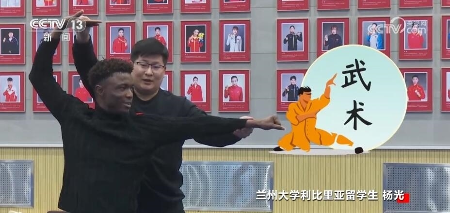 蘭州大學國際文化交流學院 利比里亞留學生 楊光:我已經(jīng)學中文一年半了,我喜歡中文,最喜歡武術,我喜歡看很多中國的電影,特別是成龍的電影,因為他的動作很多。