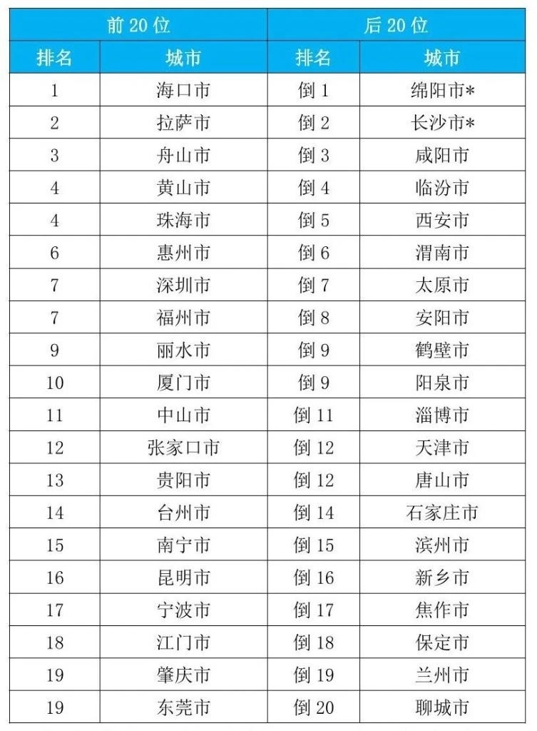 2023年1—9月168個(gè)重點(diǎn)城市空氣質(zhì)量排名前20位和后20位城市名單。(圖片來源:生態(tài)環(huán)境部)