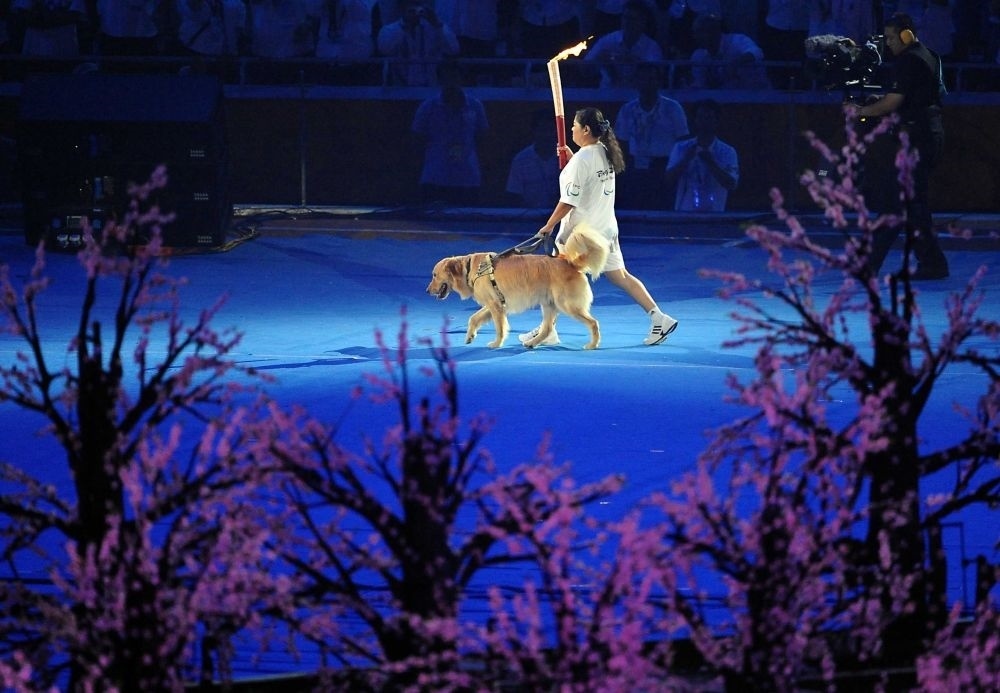 2008年9月6日,北京2008年殘奧會開幕式在國家體育場隆重舉行,火炬手平亞麗在進(jìn)行火炬?zhèn)鬟f。新華社記者王頌攝
