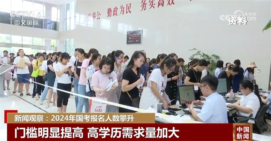 央視網(wǎng)消息:統(tǒng)計(jì)數(shù)據(jù)顯示,2024年國考報名人數(shù)逐漸攀升。截至10月22日16時,1744711人提交報名申請,比去年同期增加22萬余人,其中1390420人通過審核。目前,平均競爭比為35比1,略高于去年同期競爭水平。