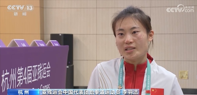 中國(guó)運(yùn)動(dòng)員李羽潔在杭州第4屆亞殘運(yùn)會(huì)女子跆拳道58公斤級(jí)K44級(jí)比賽中獲得銅牌,雖然獲得了獎(jiǎng)牌,但李羽潔還是偷偷哭了鼻子,她說(shuō)最遺憾的是在半決賽中,她以1分之差,無(wú)緣爭(zhēng)金。