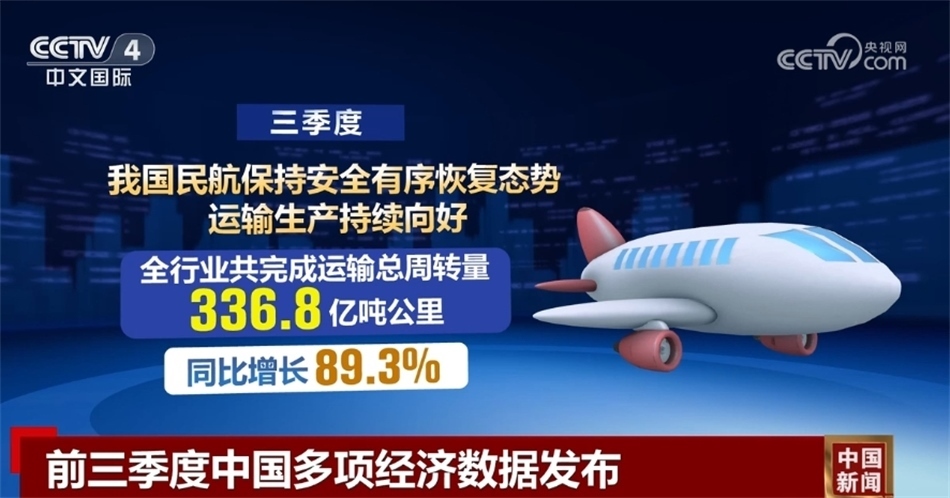 三季度,中國(guó)民航保持安全有序恢復(fù)態(tài)勢(shì),運(yùn)輸生產(chǎn)持續(xù)向好,全行業(yè)共完成運(yùn)輸總周轉(zhuǎn)量336.8億噸公里,同比增長(zhǎng)89.3%;客運(yùn)市場(chǎng)需求旺盛,全行業(yè)共完成旅客運(yùn)輸量1.8億人次,同比增長(zhǎng)108.3%,行業(yè)客運(yùn)規(guī)模創(chuàng)季度歷史新高。