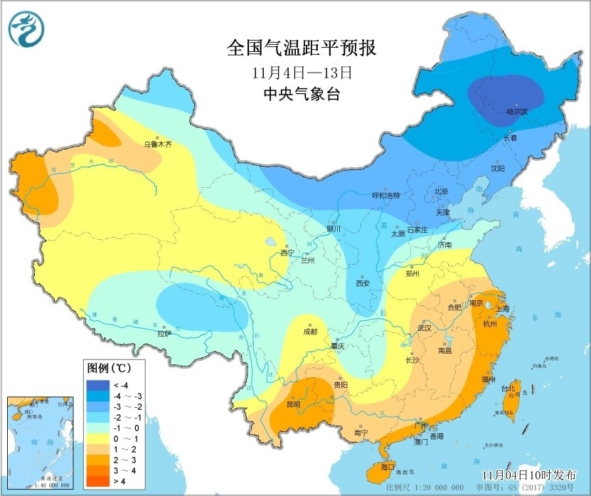 未來10天(11月4-13日),東北大部地區(qū)累計降水量有10~20毫米,東部部分地區(qū)有30~60毫米;江淮、江南、華南西部和北部等地累計降水量有20~60毫米,局地超過90毫米;上述大部地區(qū)累計降水量較常年同期偏多5成至1倍。