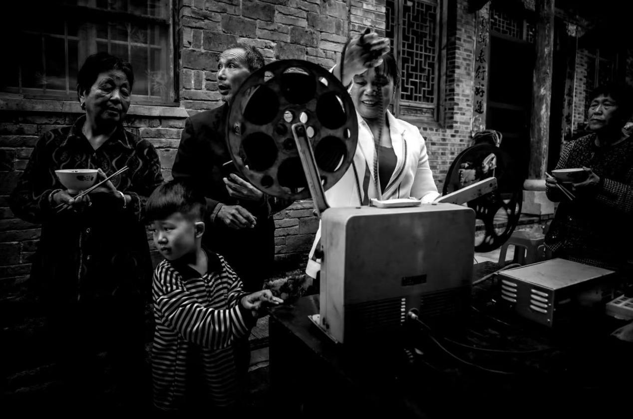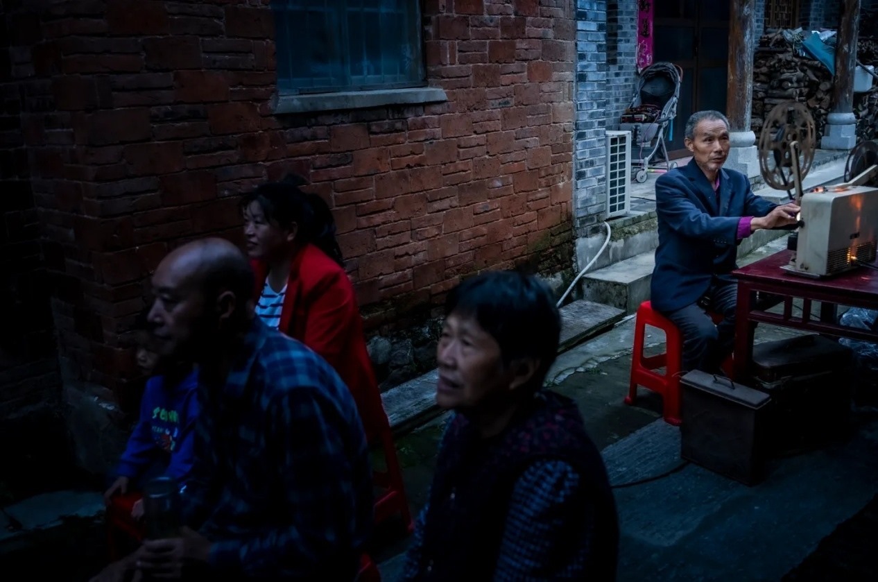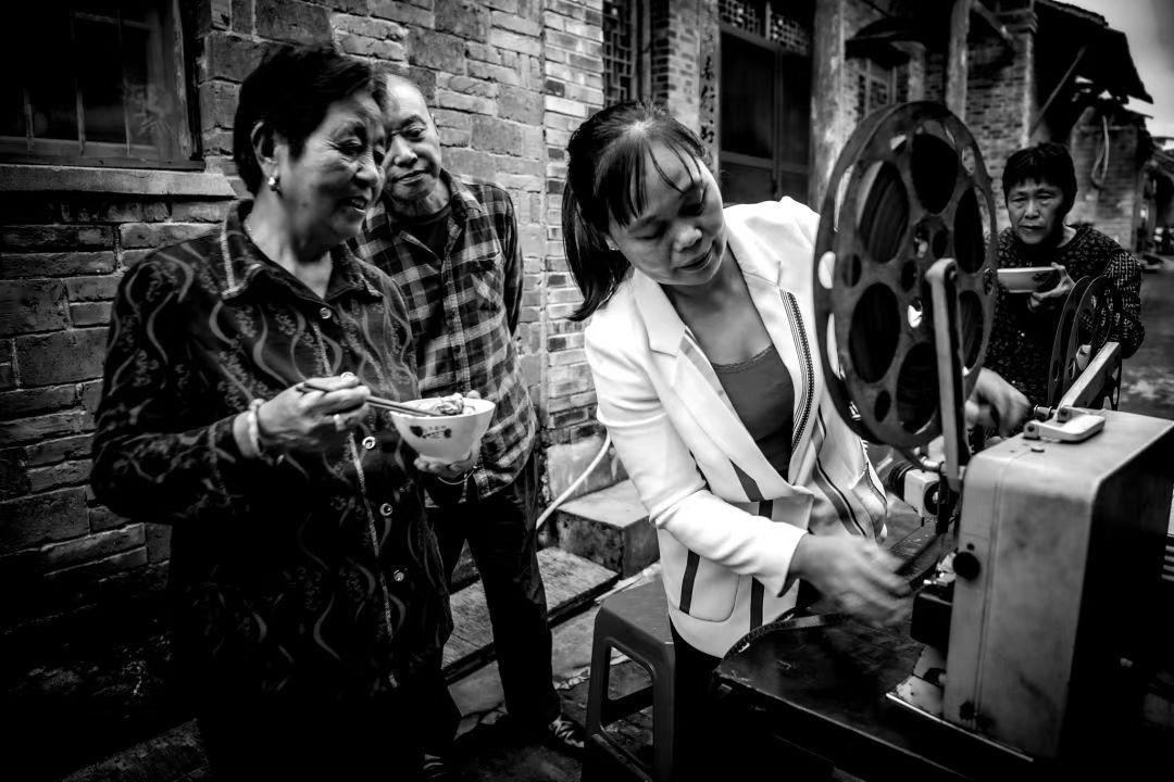 1983年,鄉(xiāng)里成立了電影放映隊,曹毅成了隊長,還參加了電影培訓(xùn)班,扎扎實實地學(xué)了放映技術(shù)、電工等好多課程,成了專業(yè)的放映員。那時片源少,一張片子各個鄉(xiāng)排期輪流放映,讓曹毅最開心的事,就是坐上幾個小時的公交車去縣里拿膠片。有時揣著膠片回來的路上就忍不住想樂,哪回放新電影都像打仗一樣,人山人海,得防著別碰壞了放映機(jī),還得留心會有哪個村連夜來搶放映機(jī)?!翱傆幸蝗f人,銀幕前后都是人,背面都有人看。在稻田里面把那稻子割完了以后,電影就在稻場里面放,不然地方不夠大。”空氣中飄著稻谷的香味,不少人會盤腿坐在地上,扎扎實實看完一部電影。