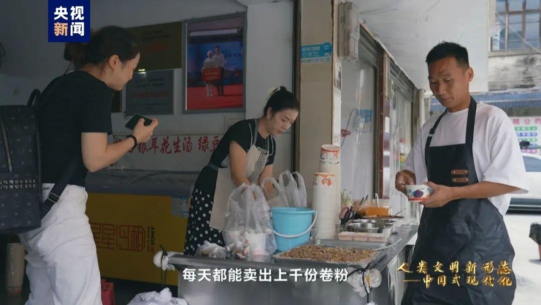 如今,董永恒的店里每天都能賣出上千份卷粉。卷粉掙錢、踢球圖樂,口袋鼓起來、體質強起來、日子美起來。