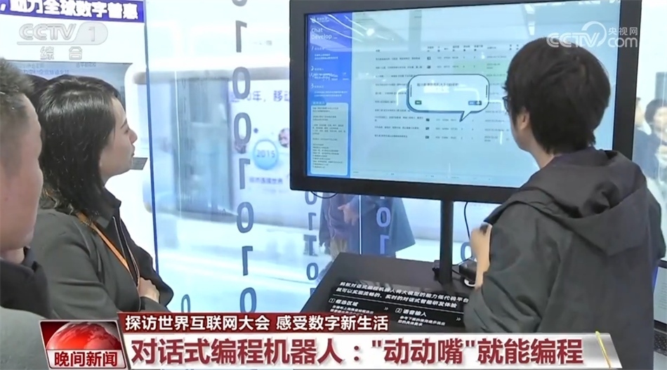 在此次互聯(lián)網(wǎng)之光博覽會的數(shù)字技術(shù)展區(qū),有數(shù)十家科技企業(yè)都展出了人工智能大語言模型應(yīng)用產(chǎn)品,覆蓋了日常生活、生產(chǎn)制造、安全防護(hù)等多個行業(yè)領(lǐng)域。這是一款對話式編程機(jī)器人,通過基于人工智能大模型的應(yīng)用平臺,非專業(yè)人士不用學(xué)寫代碼,只要“動動嘴”就能編寫相關(guān)應(yīng)用程序,并通過指令來完成多種日??此品爆嵉牟僮?。