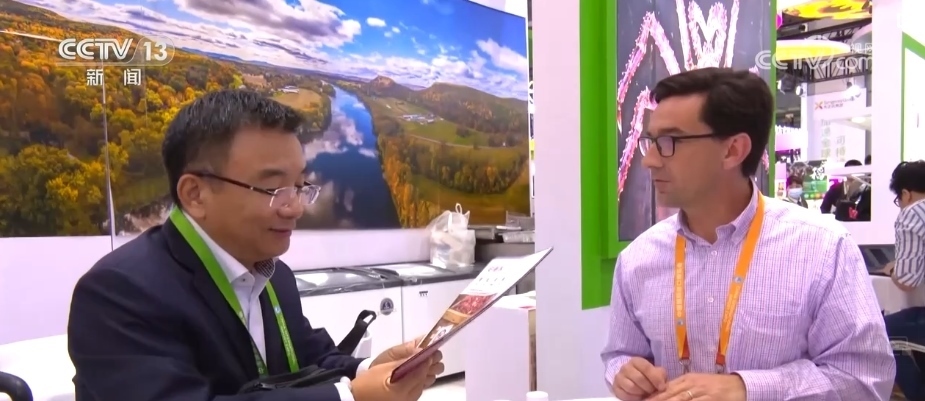 進(jìn)博會的最后一天,記者來到美國食品和農(nóng)產(chǎn)品館時(shí),美國參展商克里斯依舊在緊張地和客戶對接洽談,此時(shí)距離閉幕只剩下不到6個(gè)小時(shí)。