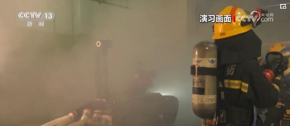 演習(xí)過程中,舉高噴射消防車從外部進(jìn)行滅火作業(yè)的同時,多支消防救援小隊進(jìn)入商場內(nèi)部,在濃煙中實戰(zhàn)模擬火場搜救和滅火作戰(zhàn)。在救援人員的遙控指揮下,消防救援機器狗首先突入火場,利用身上加裝的煙氣成分分析儀、攝像頭等多種設(shè)備,實時監(jiān)測環(huán)境危險狀況,并對火場環(huán)境進(jìn)行偵察。在大火猛烈燃燒、建筑物結(jié)構(gòu)不穩(wěn)定情況下,消防救援人員遠(yuǎn)程控制無人滅火機器人首先進(jìn)入火場,進(jìn)行前期滅火作業(yè)。為保障內(nèi)攻救援人員安全,消防員綜合定位系統(tǒng)也投入使用。每名消防員都攜帶平板終端和定位信標(biāo),指揮員可以實時掌握進(jìn)入火場人員的生命體征、實時位置。一旦救援人員遇險,系統(tǒng)能夠第一時間引導(dǎo)緊急救援小組展開營救行動。