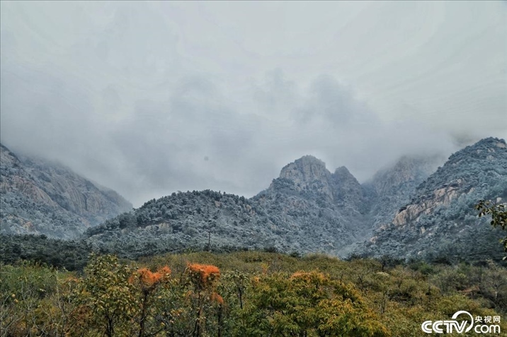 2023年11月11日,山東泰安迎來初雪,雪后泰山披上了銀色的盛裝。從山下遠望山巔,樹木山林晶瑩耀眼,猶如進入了琉璃世界。