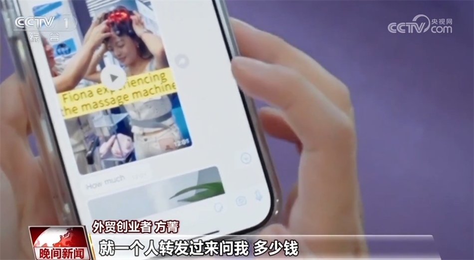 外貿(mào)創(chuàng)業(yè)者 方菁:剛剛?cè)昼娋桶亚f老師給我拍的視頻剪出來了,現(xiàn)在往我們?nèi)豪锶グl(fā)一發(fā)。你看現(xiàn)在,我還什么都沒有說,就一個人轉(zhuǎn)發(fā)過來問我,多少錢。