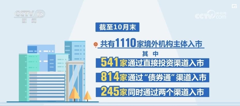 央行上??偛繑?shù)據(jù)顯示,在資金凈流入的同時,銀行間債券市場的境外機(jī)構(gòu)參與數(shù)量也在不斷增加,截至10月末,共有1110家境外機(jī)構(gòu)主體入市。其中,541家通過直接投資渠道入市,814家通過“債券通”渠道入市,245家同時通過兩個渠道入市。近年來,我國銀行間債券市場對外開放力度不斷加大,吸引了更多境外投資者。
