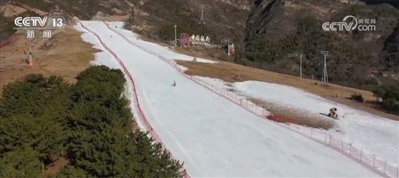 國家高山滑雪中心運行總監(jiān) 吳高勝:今年計劃開放的這個雪道面積是60萬平方米,現(xiàn)在已經(jīng)投入造雪設(shè)備170臺、壓雪設(shè)備13臺,現(xiàn)在全面開展造雪和推雪工作。