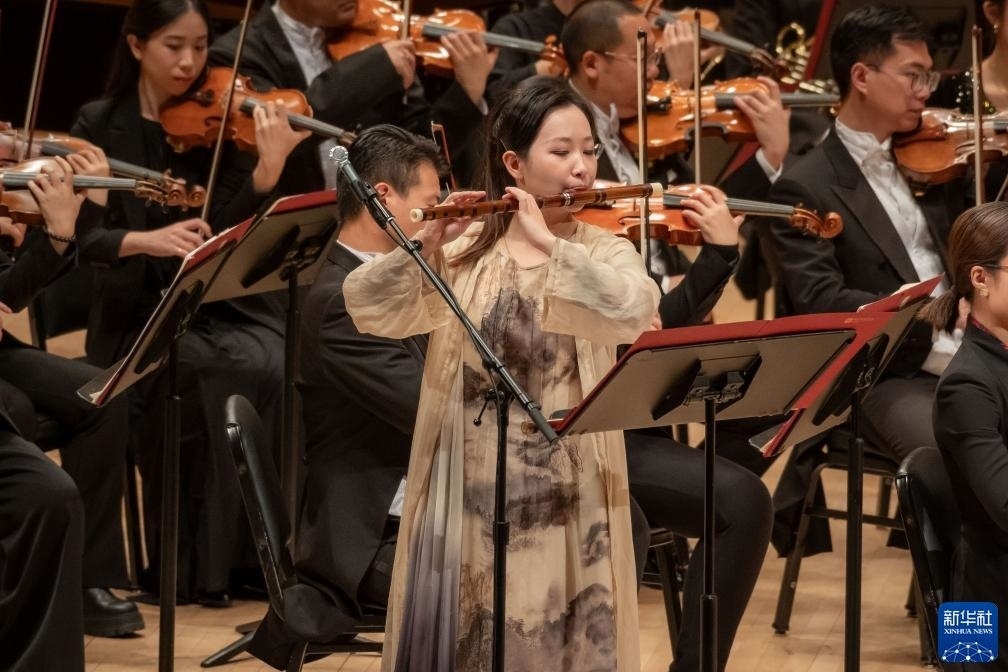 11月24日,中央音樂學(xué)院竹笛演奏家范臨風(fēng)在美國紐約卡內(nèi)基音樂廳進(jìn)行演出。新華社發(fā)(邁克爾·維奧拉果攝)