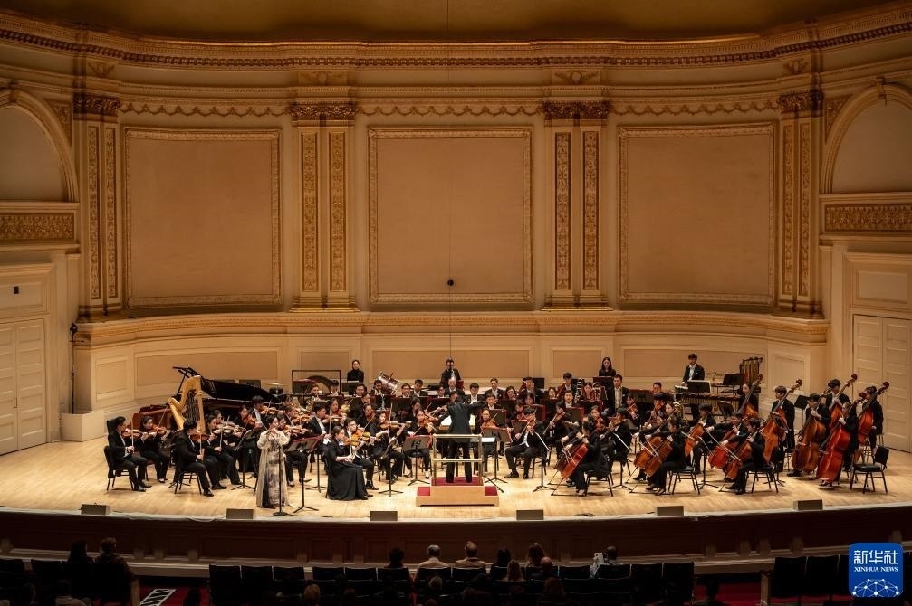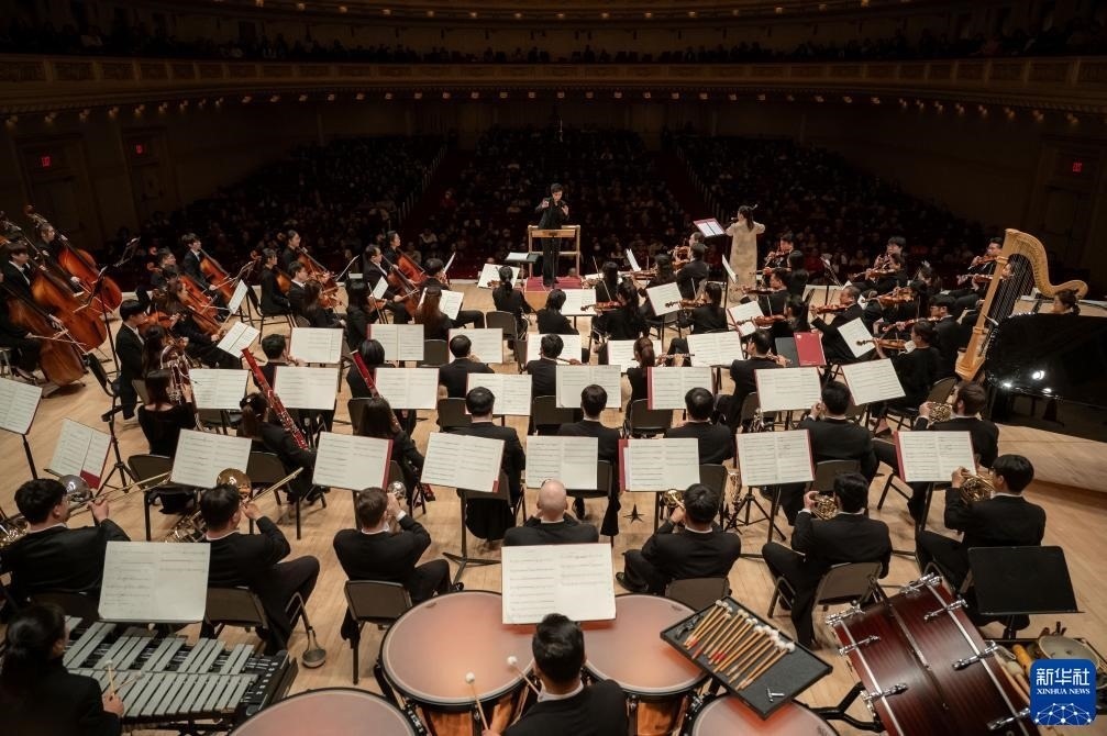 11月24日,來自中央音樂學(xué)院交響樂團(tuán)的藝術(shù)家在美國紐約卡內(nèi)基音樂廳進(jìn)行演出。新華社發(fā)(邁克爾·維奧拉果攝)